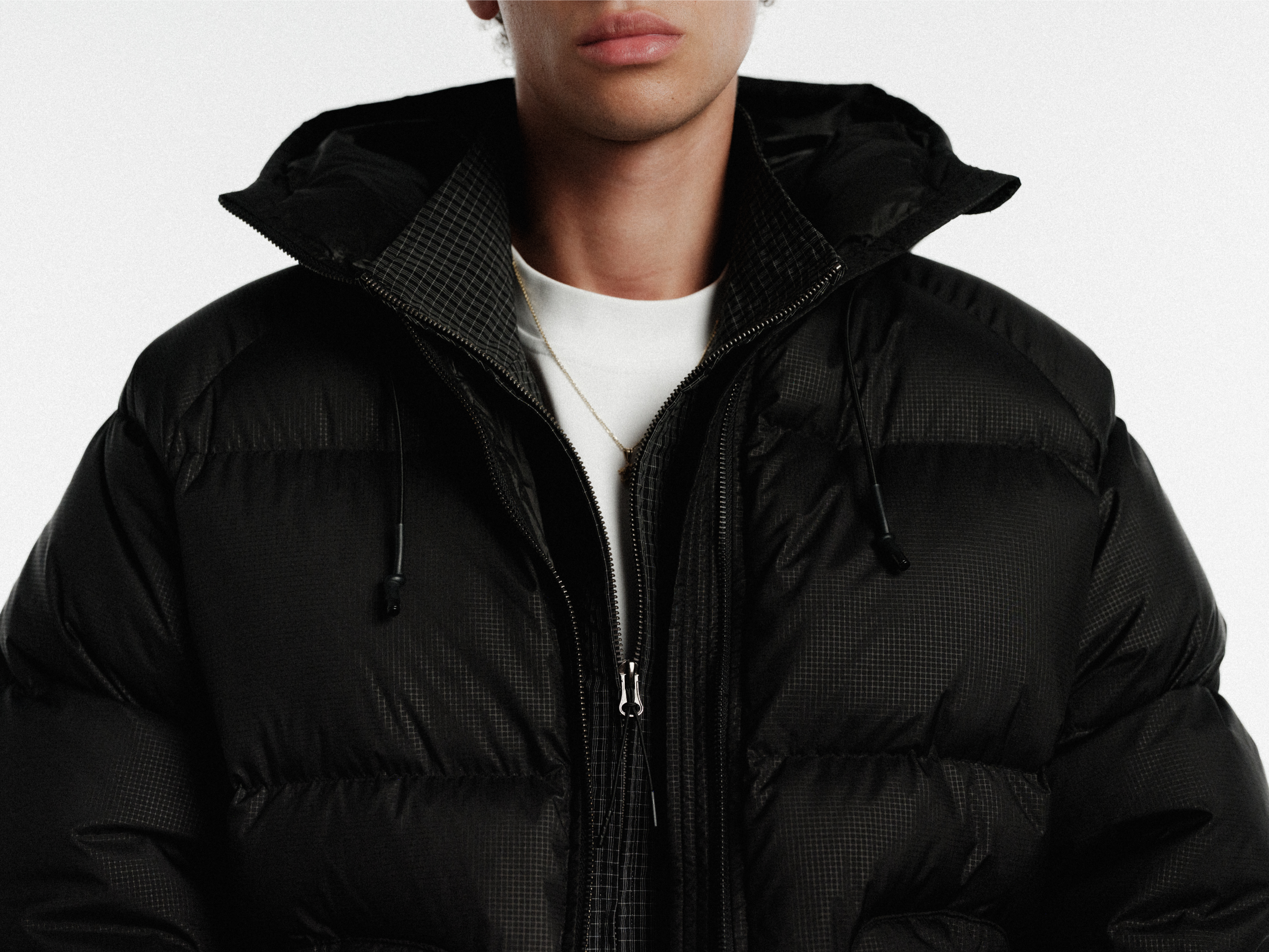 HOODED PUFFER JACKET - BLACK